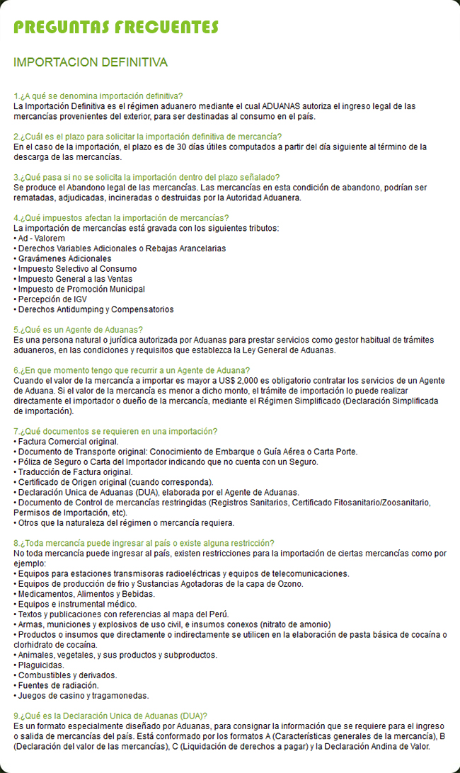Directorio Teléfonico Horario de Aduana Trámites Aduaneros Preguntas Frecuentes Equipaje Exportación Definitiva Importación Definitiva Menaje de Casa
